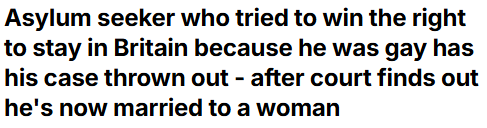 5. Labour often bribe them to leave with thousands in cash, then add them to the number "deported". 😆 They probably return by dinghy once they spent the cash. Yes many go home to visit thier wives despite claiming asylum because they are persecuted for being gay. Others just pretend to be gay then marry a woman. 😆 https://www.dailymail.co.uk/news/article-14727051/asylum-seeker-gay-case-married-woman.html The lefties luvvies aren't too hard to fool.