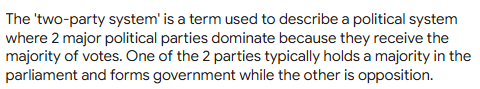 12. Perhaps you don't know what a 2 party system is. When was the last time Labour or The Conservatives were not in power Chomps? I'll give you a clue, it was over 100 years ago.