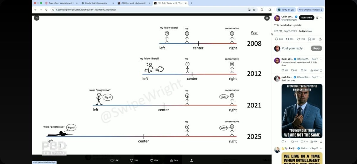 Regarding the tyranny report... https://www.breitbart.com/2nd-amendment/2025/09/14/report-charlie-kirks-alleged-assassins-romantic-partner-was-transitioning-from-male-to-female/ Regarding assassin was a right wing MAGA nutjob and not a leftist... https://www.timesnownews.com/world/us/us-news/what-was-charlie-kirks-shooter-tyler-robinsons-political-leaning-heres-what-utah-governor-revealed-article-152801715 Still, even today, the left inside and outside the United States are gaslighting the people through the leftist media that they are as pure as the wind-driven snow, never said a discouraging word about folks who believe right ideology is the correct political way and finally are in no way to be blamed for radicalization of our young generations. Leftists can't win in rational debates nor in the ballot box right now but they're counting on all the hard work of leftist indoctrination of our young kids over the past few decades to pay off big time... and soon too.