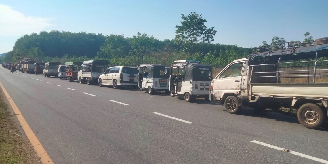 Myanmar is gripped by a worsening fuel crisis that has doubled the price of basic goods and thrown daily life into turmoil. Queues of cars and trucks stretch for miles in Yangon, Mandalay and beyond, as pumps run dry despite the junta’s insistence that reserves will last another 50 days. Officials have taken to the streets with loudspeakers, urging drivers to stop panic buying, but scenes of frustration and desperation continue. A container truck driver described waiting overnight just to secure enough diesel to reach Mandalay. With rationing in place, journeys that once took four days now take a week, driving up transport costs and pushing cement and gravel prices to record highs. “This is the main reason for soaring commodity prices,” he said. For ordinary people, the crisis is devastating. Trishaw drivers, barred from official fuel stations, are forced onto the black market where prices are nearly triple the official rate. Many are reluctant to raise fares, fearing they will lose customers, even as they struggle to afford basic meals. The junta has tried to impose order with rationing systems, limiting motorists to two refuelling trips per week and even sending government staff home on Wednesdays to save fuel. Yet prices continue to climb: premium diesel has jumped from 3,560 to 4,820 kyats per litre, while Octane 92 has risen from 2,830 to 3,610 kyats. Airlines have cut domestic flights, but the military still appears to have ample aviation fuel for its ongoing airstrikes in resistance-held areas. Junta chief Min Aung Hlaing chaired an emergency meeting this week, promising lower prices and adequate supply, while suggesting Thingyan festival-goers opt for “splash walks” instead of vehicle parades. For many, such words ring hollow. As one trishaw driver put it: “This global crisis is making it hard for poor people like us to afford even basic meals.” -2026-03-29