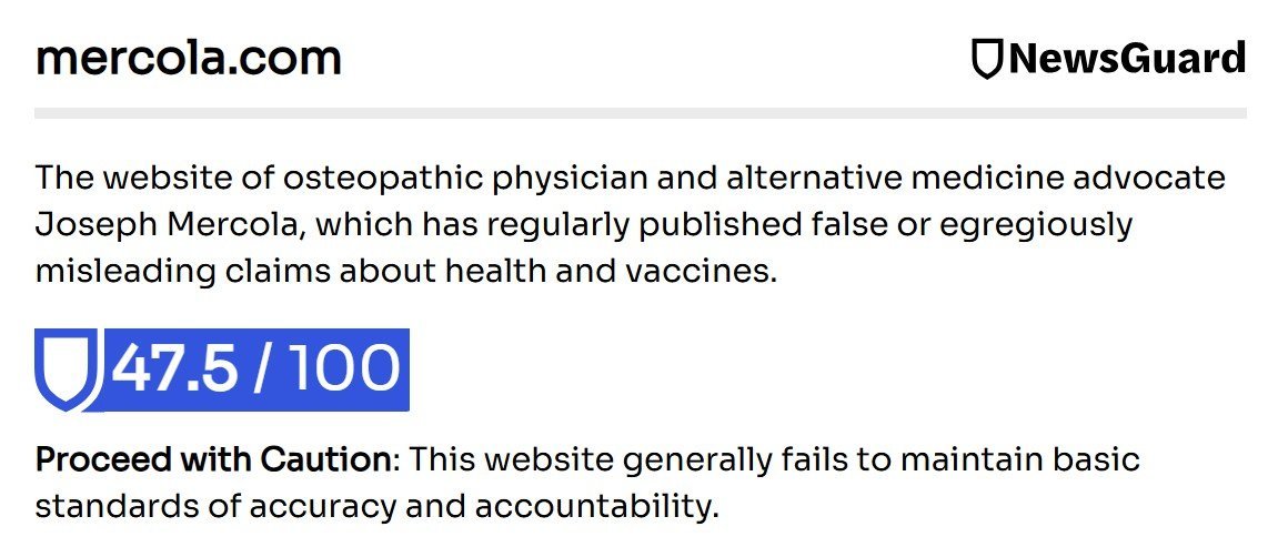 Notice the recurring theme with all of the above-cited anti-vaxer sources that get posted here: ''regularly published false or egregiously misleading claims about health and vaccines." "generally fails to maintain basic standards of accuracy and accountability." These are the anti-vaxers bibles.