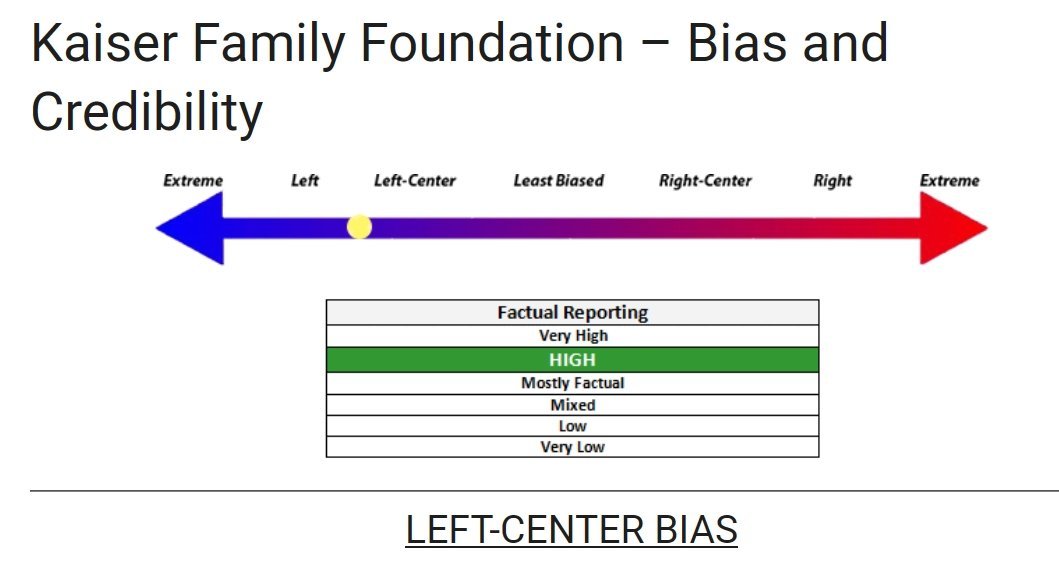 "Overall, we rate Kaiser Family Foundation Left-Center biased based on editorial positions that moderately align with a liberal perspective. We also rate them High for factual reporting due to pro-science reporting, credible sourcing, and a clean fact-check record." "The Henry J. Kaiser Family Foundation (KFF), or Kaiser Family Foundation, is headquartered in Menlo Park, California. It focuses on major national health care issues and the U.S.’s role in global health policy. The Foundation states that it is a non-partisan source of facts and analysis, polling, and journalism for policymakers, the media, the health care community, and the general public, and kff.org is known for having the “most up-to-date and accurate information on health policy. Kaiser is a reliable source for factual healthcare information but leans left in story selection and editorial direction." https://mediabiasfactcheck.com/kaiser-family-foundation/