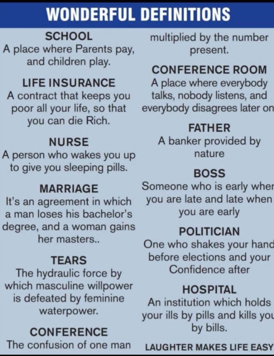 WALKING ON THE GRASS The room was full of pregnant women with their husbands. The instructor said, "Ladies, remember that exercise is good for you. Walking is especially beneficial. It strengthens the pelvic muscles and will make delivery that much easier. Just pace yourself, make plenty of stops and try to stay on a soft surface like grass or a path." "Gentlemen, remember -you're in this together. It wouldn't hurt you to go walking with her. In fact, that shared experience would be good for you both." The room suddenly became very quiet as the men absorbed the information. After a few moments a man, name unknown, at the back of the room, slowly raised his hand. "Yes?" said the Instructor. "I was just wondering if it would be all right, if she carries a golf bag while we walk?" Brings a tear to your eye, doesn't it? This level of sensitivity can't be taught!- Very very basic info needed.