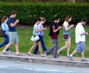 I'd outlaw reading a smart phone while walking. You go to any public space, especially hypermarts and malls, and half the people there are smart-phone zombies. They don't have a clue about their surroundings. I've had all sorts of encounters with the smart-phone walking dead. The most memorable was when a member of the walking dead, face-down staring at his smart-phone, simple stops on exit platform of an escalator. With people behind me, I had to literally push him off of it. I was expecting a confrontation - but the guy didn't even notice. He didn't skip a beat but just kept reading his phone. Yeah - there should be a law.