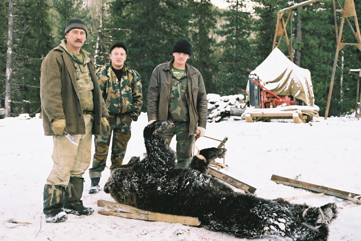 We had bears, both in the Siberian projects and in Kamchatka. There were guns in the camps but I didn't carry one, and certainly not when venturing out to the toilet block at night. I added a photo above of one that entered camp and was shot, they followed the blood trail in the morning and hauled the carcass into camp. The meat fed the camp dogs that raised the alarm.