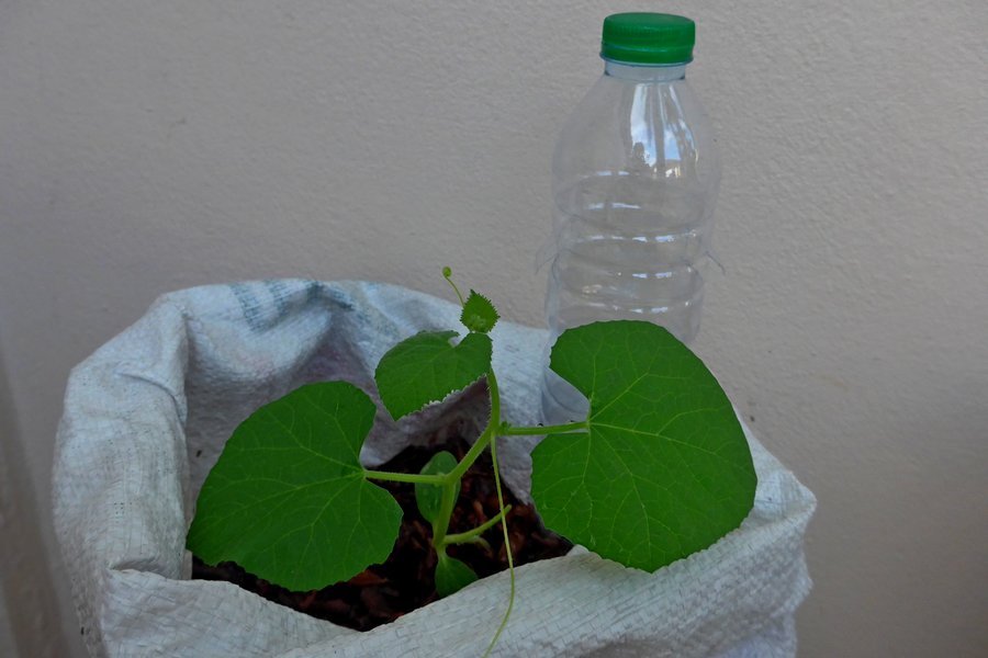 I Put 3 young plants into grow bags, 2 days later the leaf miners had been at them, so I thought mothballs a week later all fine no sign of leaf damage. later on the bottles will be hung from the netting (yet to be put up) I will more than likely have to pollinate the plants myself.
