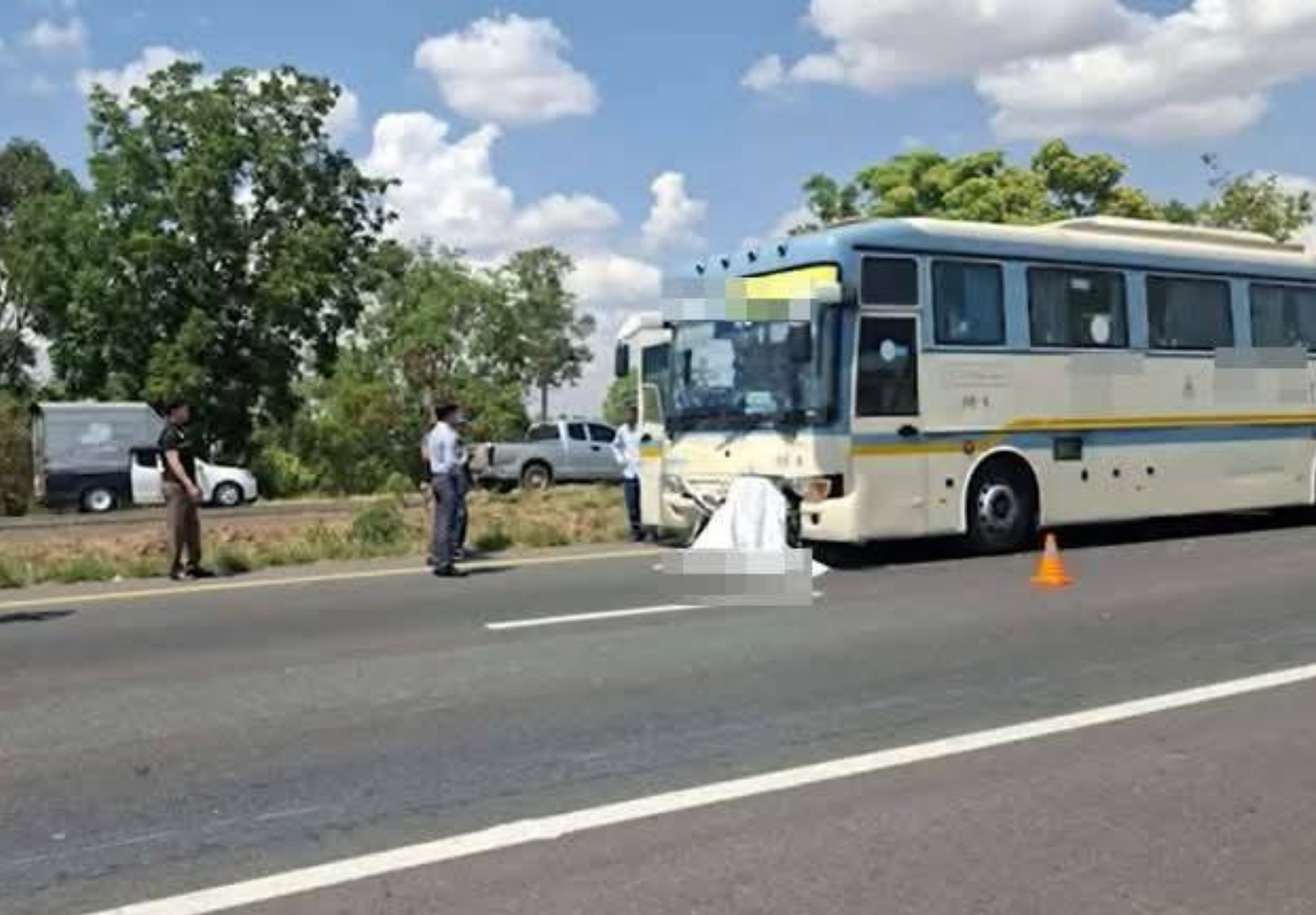 Police later identified the victim as Rangsarn, aged 42, from Khon Taek subdistrict in Sangkhah district, Surin province. Passengers on the bus, which was reportedly full at the time, were left shocked by the incident.