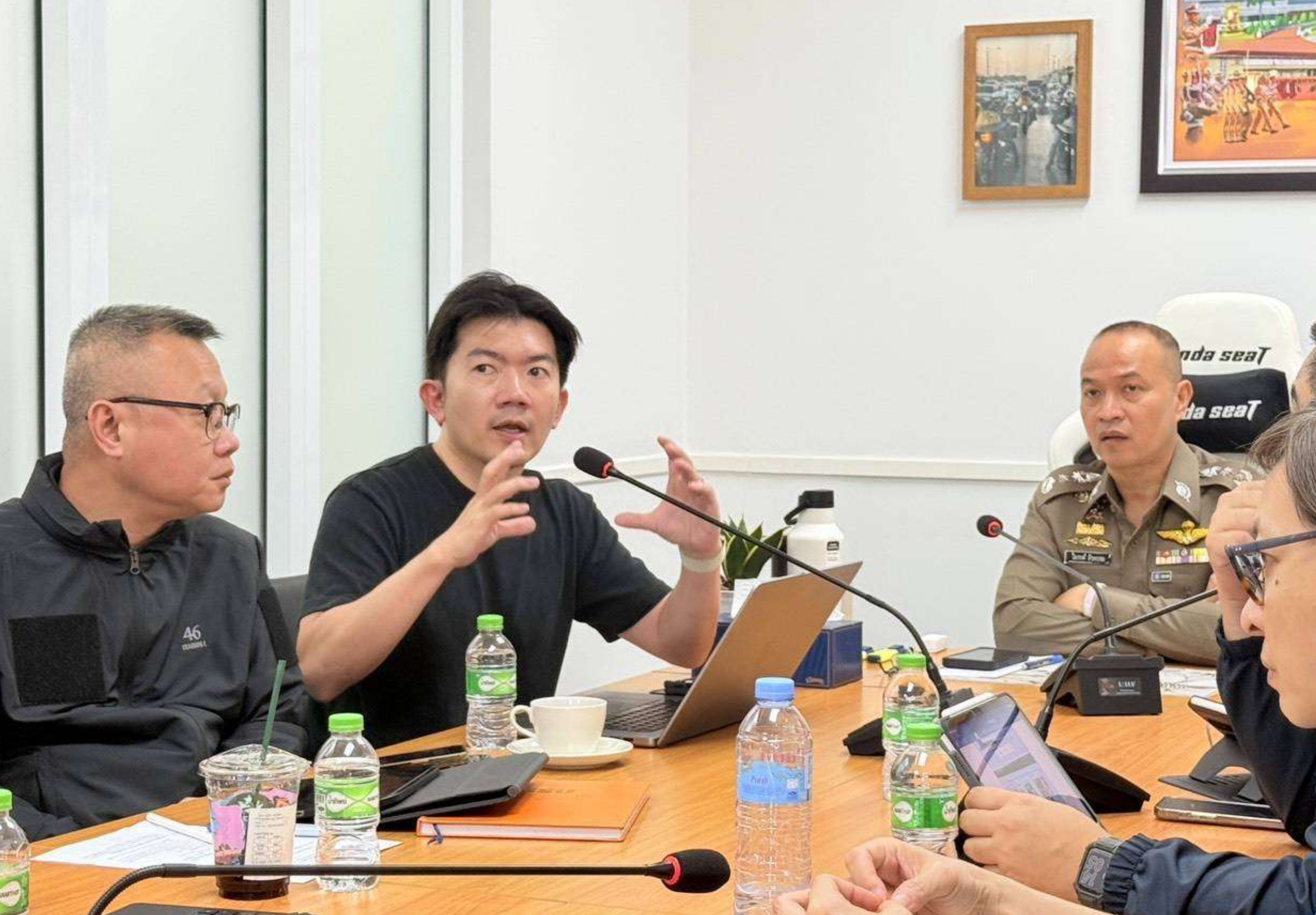 A meeting was held involving Pol Lt Gen Trairong, Pol Maj Gen Thanantorn Rattanasitthiphak, Deputy Commander of the Office of Legal Affairs and Litigation and representatives from the Technology Crime Suppression Division under the Cyber Crime Investigation Bureau. They met with Ben Leechaianan, Head of Public Policy at Facebook Thailand, along with Mr Avinash Raju and Ms Fatima Laraib from Meta Platforms, Inc. The discussion focused on integrating cooperation to combat illegal gambling websites, unlawful lending operations and related online advertising.