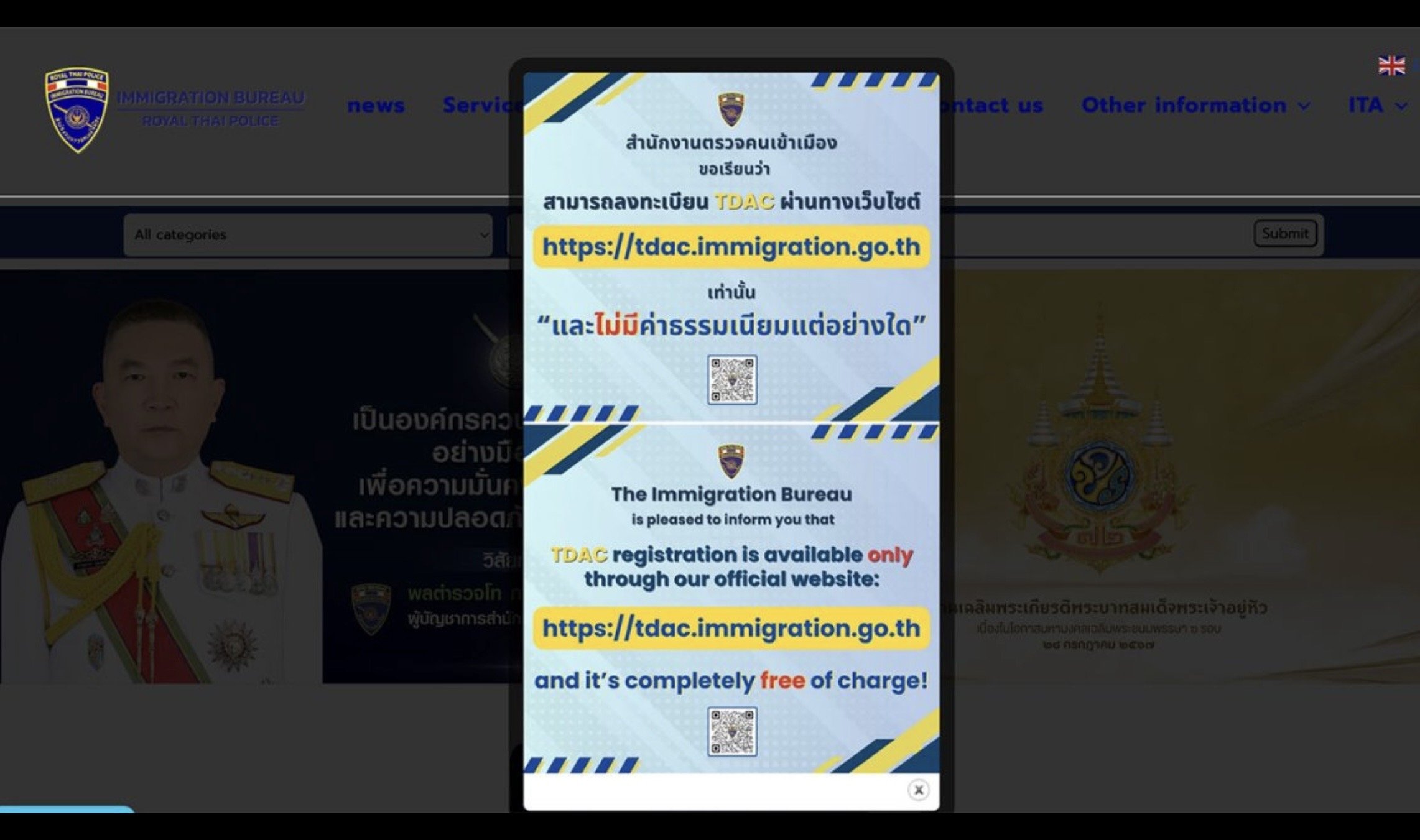 Immigration spokesman Pol Maj Gen Choengron Rimpadee said some travellers had been misled into using unofficial websites not connected to the Thai immigration system. He emphasised that registration must only be completed via the official website at tdac.immigration.go.th or through the Immigration Bureau’s main site, which provides a verified link and QR code. Despite repeated warnings, at least 10% of foreign arrivals had mistakenly used such sites, which often charge between US$20 and $90.