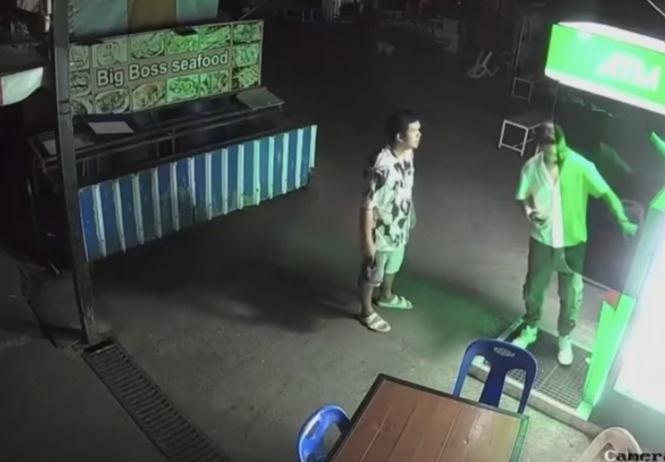The footage shows a male tourist withdrawing cash at 05:12 near Soi Bangla’s seafood market in Patong, Kathu district, while a Thai man stands behind him. Two additional men then approach, allegedly intimidating and assaulting the tourist before seizing the cash and fleeing.
