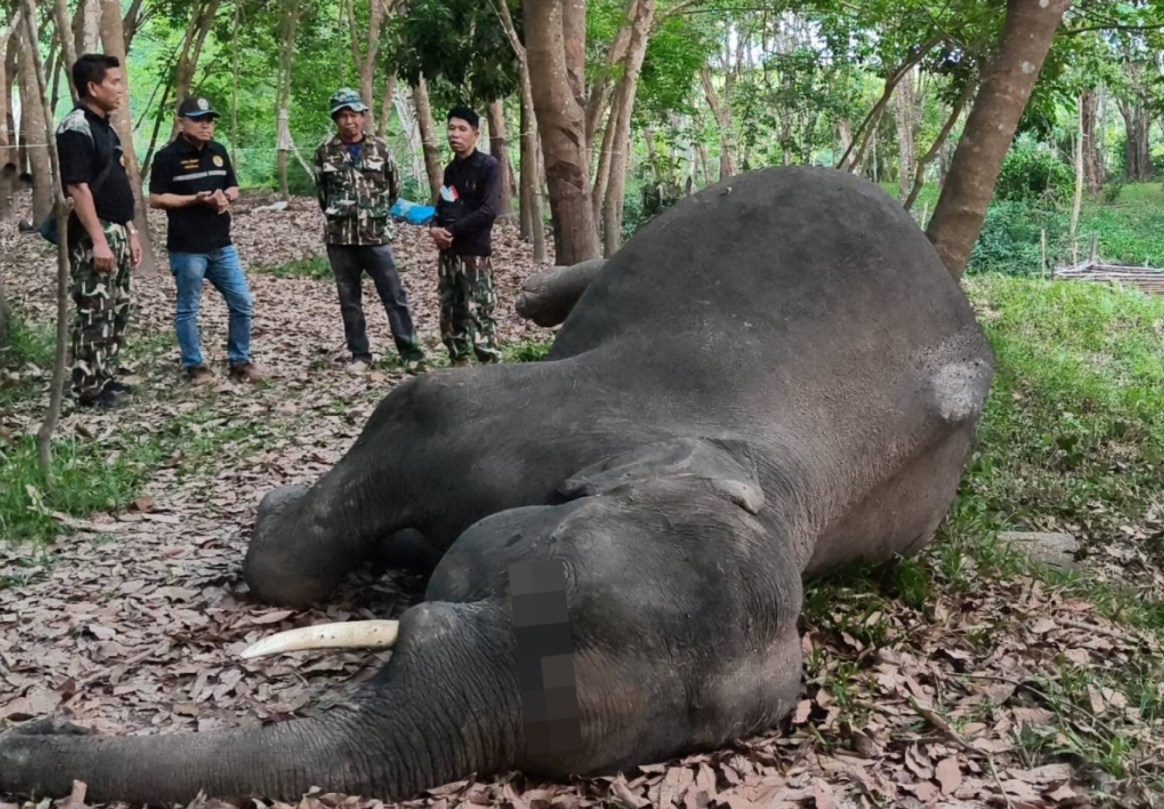 A male wild elephant from Phu Wua Wildlife Sanctuary has been found dead under unexplained circumstances in a rubber plantation in Bueng Kan Province, prompting authorities to order an urgent necropsy. Officials confirmed there were no visible signs of injury, raising concerns about the cause of death. The discovery has led to immediate coordination between park authorities and veterinary teams to determine what happened.