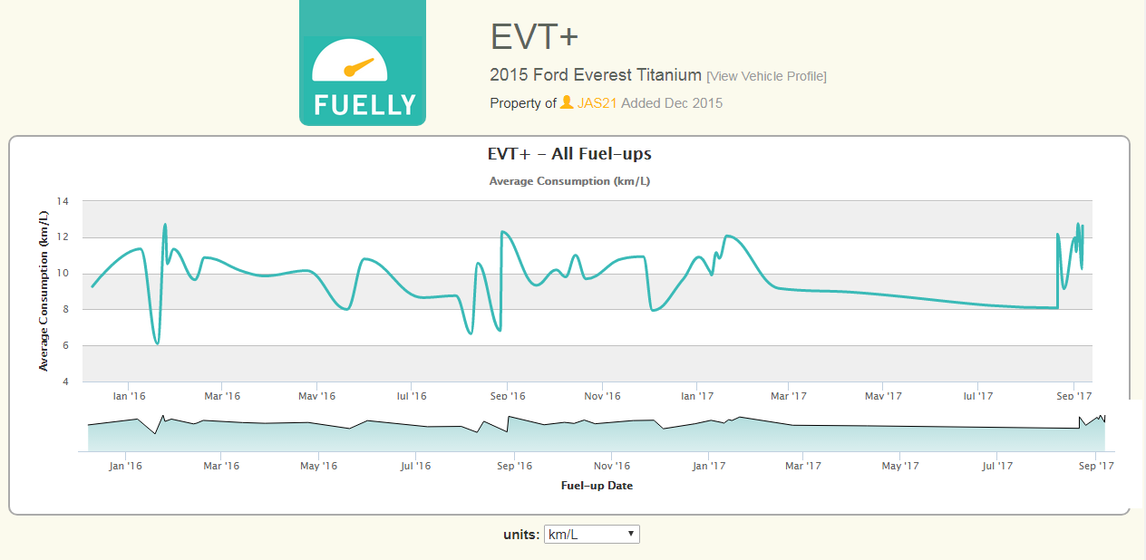 This is a record of 'actual' fuel used/distance travelled since new ....  3.2Ltr (not computer km/ltr)