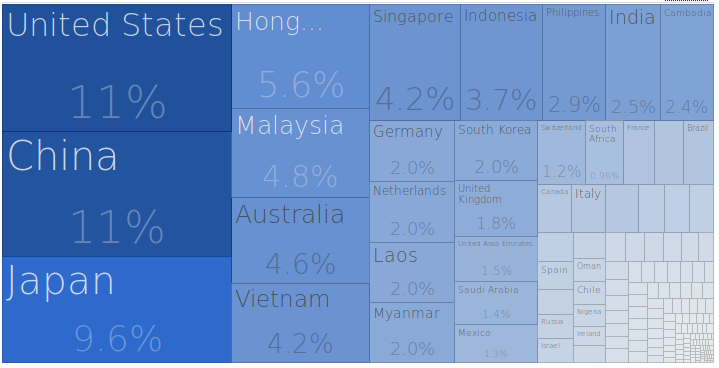 Relevant for your argument: Thailands Exports by Country (2015)
