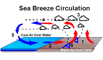 fig 2 - Coastal air changing direction  according to sea/land temperature differential