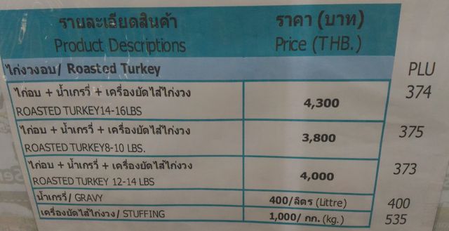 Regarding Villa Markets, I noticed this turkeys price list the other day when I was in their main Suk Soi 33 store in Bangkok.  Not sure which brand, but may be their imported Norbest ones as they'll all indicated as being pre-cooked.