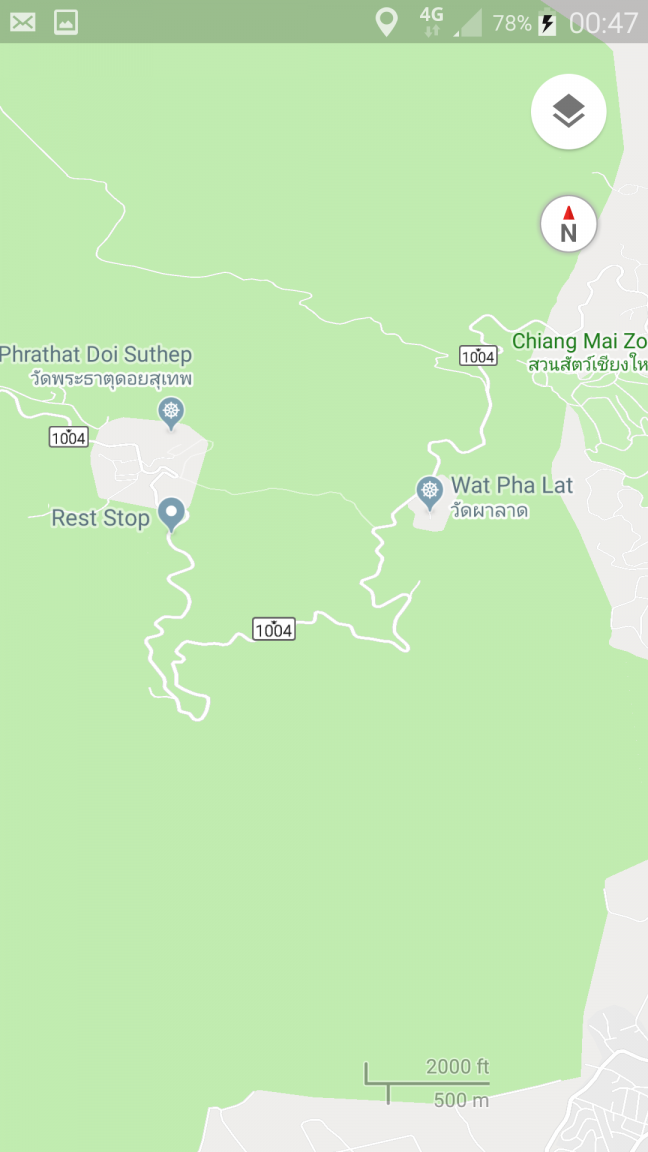 I've done thr trip many times...as you can see by the 2 maps(with scale) it is only about 5 km from middle of old town up to the base of suthep (at the CM zoo)  then take the windy road up the hill.. prob another 7 to 10 kms. Dunno the way your map said it was 38 km bozo.....do you let GPS plot all your routes for you? They can be way off