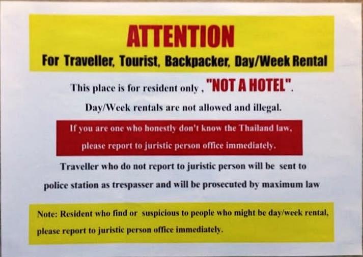January 24, 20188 yr Popular Post Old news. Policy introduced last year. Condos are not hotels. We dont want drunken, disrespectful cheapskates destroying the harmony we paid millions of baht for. We an our families live here, work here, get up to go to school here. The new rules are common knowledge. Air BnB is causing problems through out the world. Not your fault. Its the law of unexpected consequences. Any owner who has paid 5 million for a condo does not want strangers with no commitment to their community in their block shouting, drinking, swearing, arguing, slammin door, littering, spitting in elevators, smoking by the pool etc. Owners who rent irresponsibly can be subject to fines and bureaucratic hell. Good.