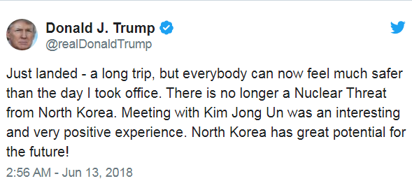 As virtually everybody predicted, the ridiculous summit with no preparation, no goals was just a brilliant photo opportunity, self-congratulating, distraction mission by Trump probably approved by the Kremlin. No details were released before or after the meeting about how the situation would specifically be improved. Fox News went into hyperdrive, stating Trump was the statesman of the century and should get the Nobel Peace Prize. His supporters lapped it up despite the vast majority of them not knowing where North Korea was on a map but overnight they all reprogrammed their brains from "Kim Jong Un very bad" to "Kim Jong Un okay guy".