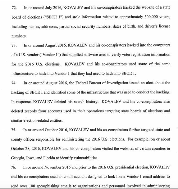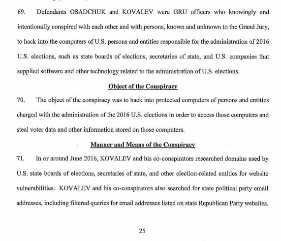 The indictment notes that on or about July 27, 2016 the Russians attempted for the first time to break into email accounts "at a domain hosted by a third-party provider and used by Clinton’s personal office. At or around the same time, they also targeted 76 email addresses at the domain of the Clinton Campaign."