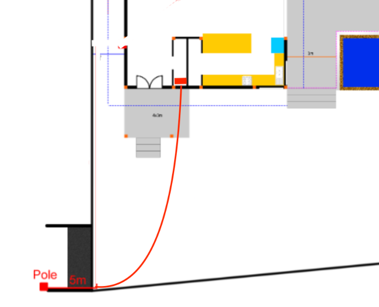 Option 1: Underground copper is actually about 55m but I allowed a little more for running in and termination at each end. Follow the red line around the left side
