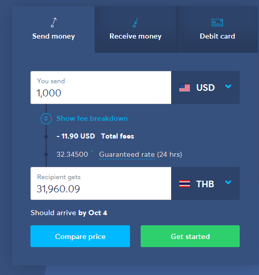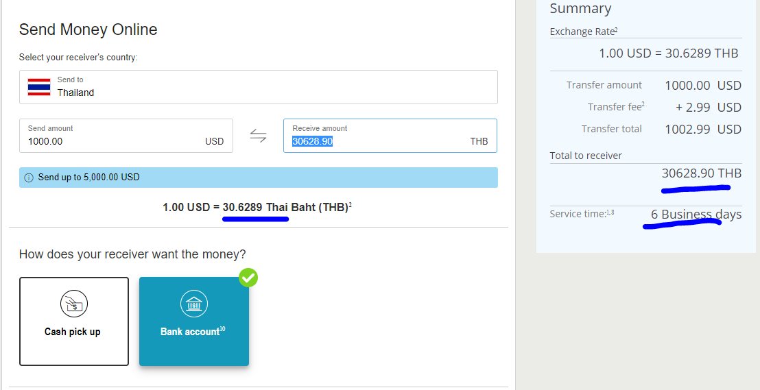 Transferwise higher fees and only a marginally better ex rate, on a thousand dollars probably a couple of hundred baht difference, and its slower.