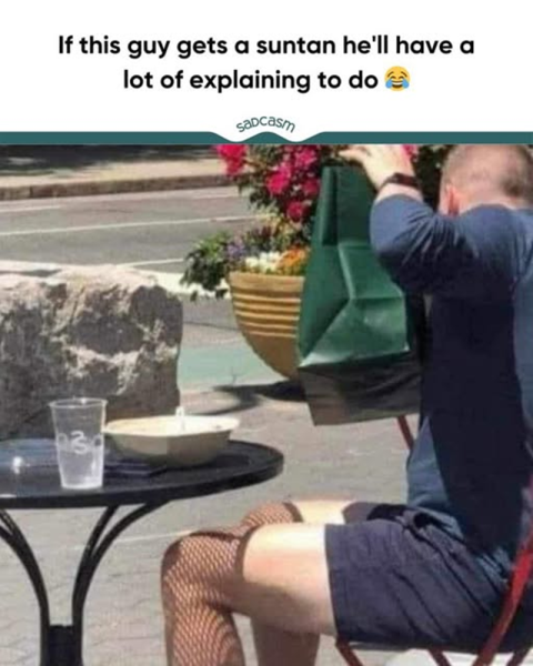 "Well Jack, it's like this. Last week in that hot sun I was out all afternoon without a shirt on. Bloody hell, I suffered the next day. My neck was as stiff as a plank...
