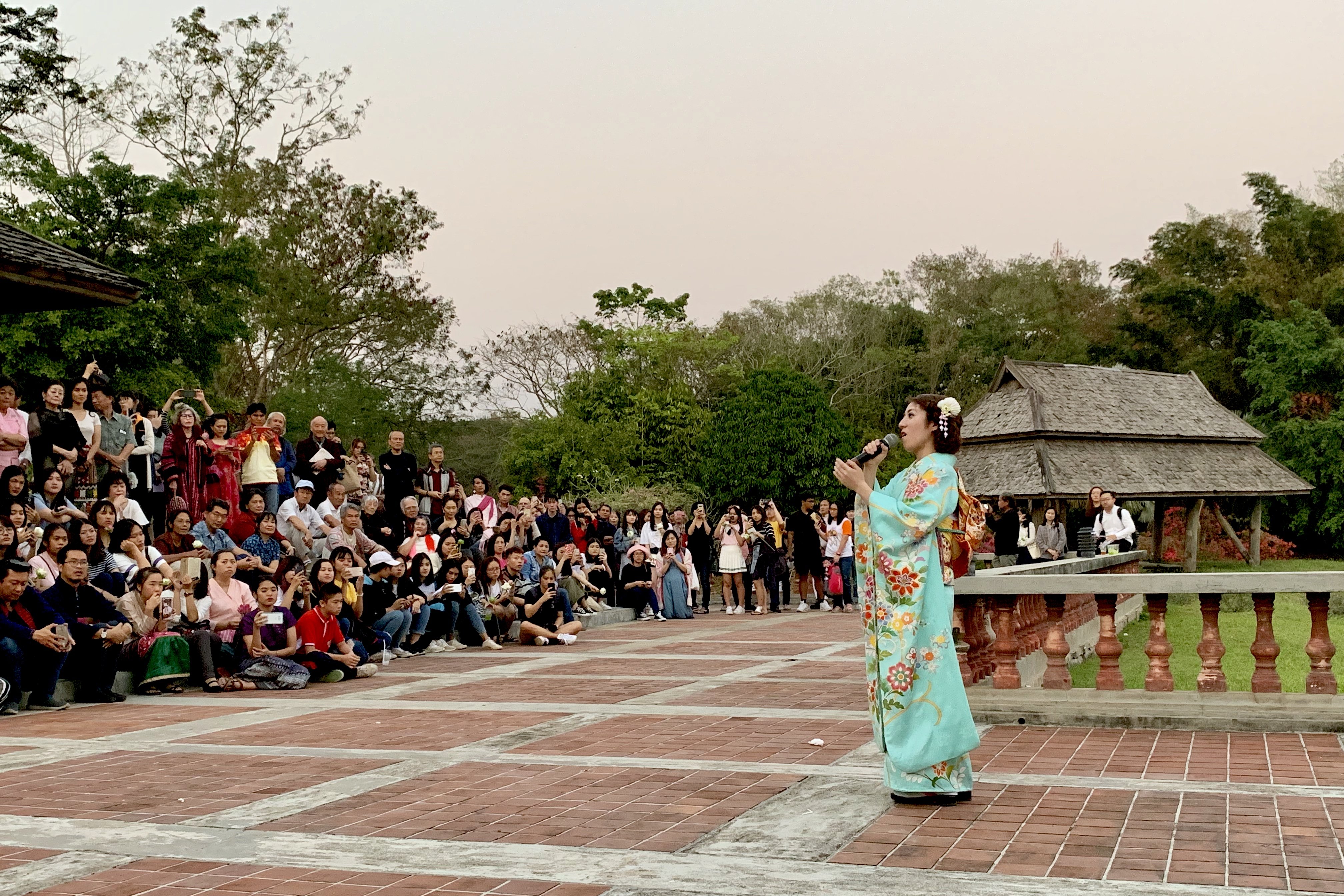 A friend of ours invited us to this Japanese cultural event and we really didn't know what to expect.  She came with her family and we ended up knowing several other people in the audience.  The Japanese lecture on pottery was only translated in Thai so I am not sure how much the westerners in the audience got but the flute music was beautifully performed in a stunning location at Mae Fah Luang Art and Culture Park.  The Japanese singer was quite good, too.  The two girls were the receptionists.