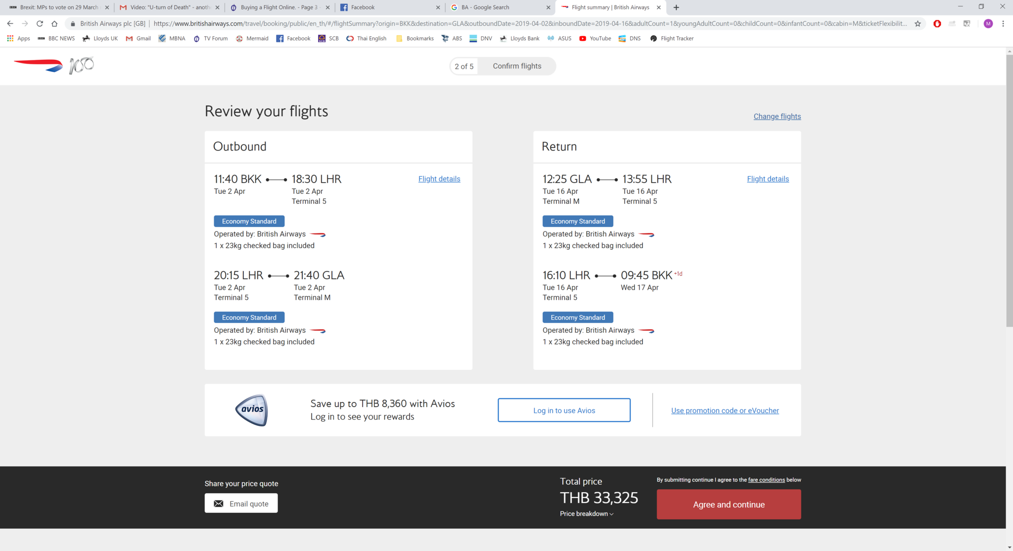 Price from British Airways site: 35,305 Baht