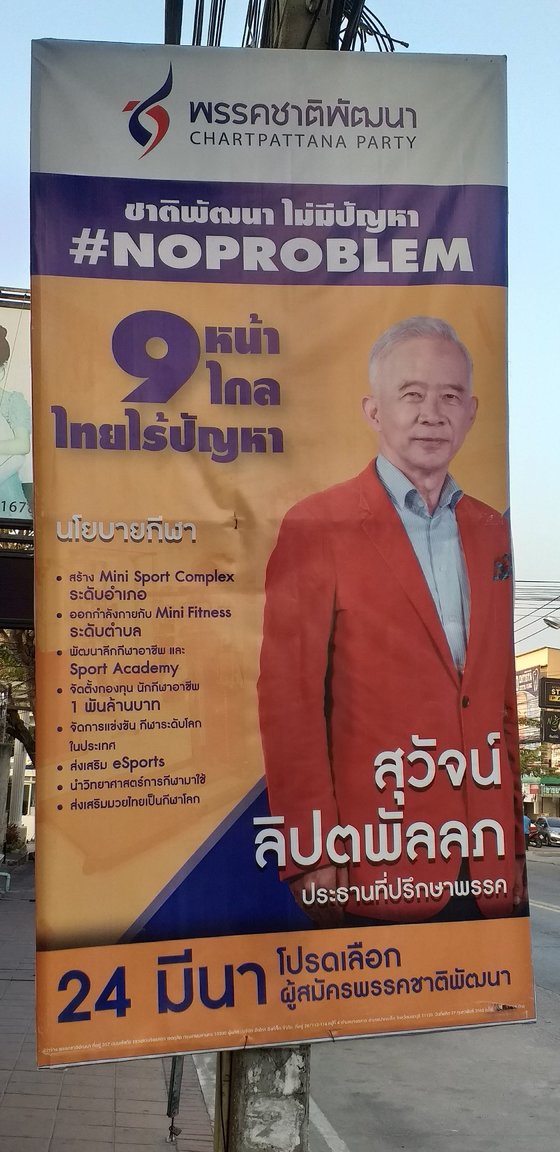 Why is that even in English? Can't ever remember seeing election posters in the U.S. with Thai script.