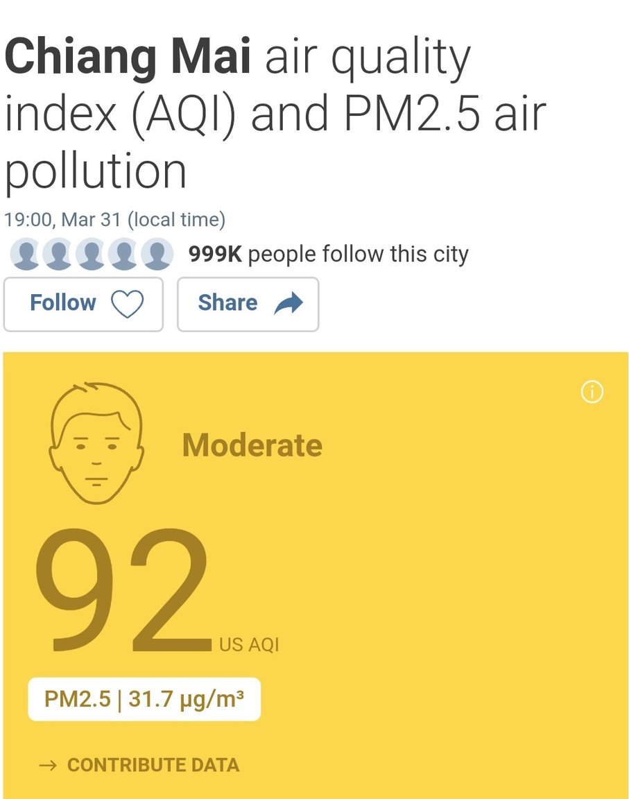 I read you to say air quality is very important to you. Clearly, living in the city that has the world's worst air wasn't a good choice to begin with. In fact, it was the worst possible choice of all the cities in the world to live in. And there is nothing new about poor air quality in Chiangmai.