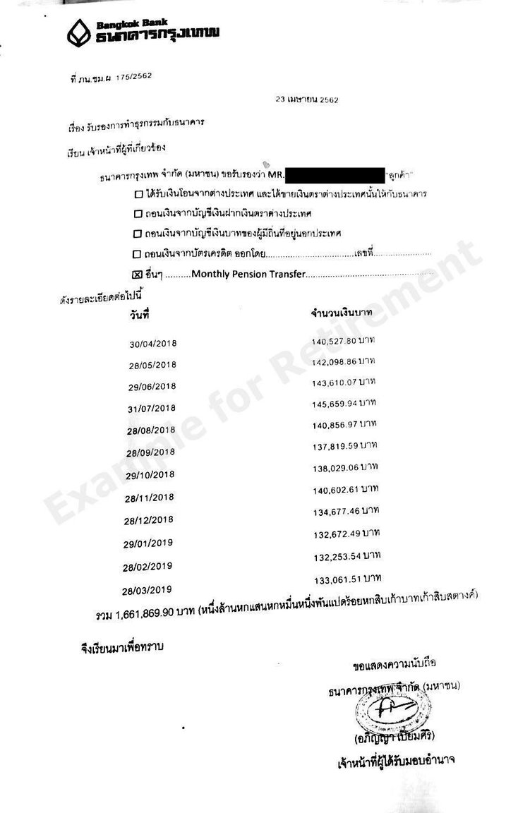 A previous post on this Forum mentioned the name of the specific letter that Bangkok Bank will issue to account holders showing international (foreign) transfers for the past 12 months in order to provide this to Immigration showing monthly transfers meeting the THB 65,000/month minimum. Can someone please remind me what that letter is called? Thanks in advance.
