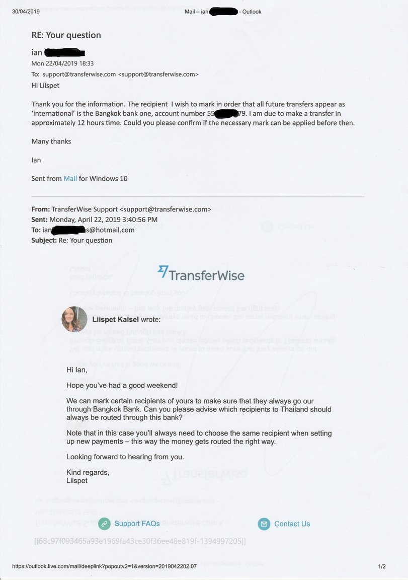 I did consider TransferWise but as the costs are very similar, I would prefer to transfer my monies directly from my bank in the UK to my bank in Thailand, without using an intermediary.