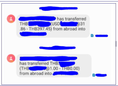 As I mentioned earlier, despite having credit notes from Bangkok Bank showing source and destination, the funds are in Thai baht and go through intermediary banks and show as Bahtnet. According to BB I have to contact the intermediary banks to get confirmation that 18 different transfers are from overseas.????