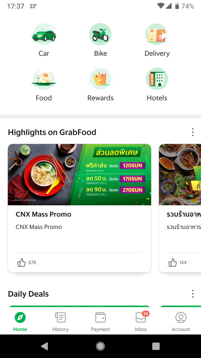 I am in Chiang Mai looking at my latest updated Grab app.  I see Car, Bike and Delivery.