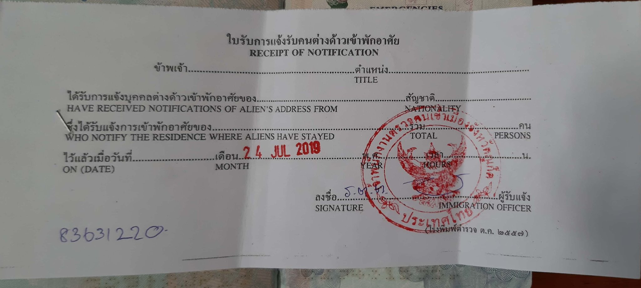 July 25, 20196 yr Author I'm a bit confused, when you update your address(same address but have stayed out of country) all you need is passport and address notification slip? you say all documentation do you mean passport and slip or something else? Yes when I last was there 31. May. Now, I had read one place here on TV that if you had not changed address but come from abroad it was possible to use the drive trough also for address notification. (Can be I misunderstand!!) However and as said went to Immigration with all necessary documentation and asked in the drive trough window, answer was yes so I gave all the documents and 5 minute later got back a new notification slip(everything in Thai except the date 31) and also updated 90 day report. When I a few days ago now in July did my retirement extension everything went well until the assistant suddenly say that my address now was different from when updated in May. I have never changed any address in Phuket and its the same landlord I have had 20 years plus. So in the end I got 2-3 hours extra time that day at Immigration, and to hank in the landlord and get all the necessary documents before I finally got my new address notification and then extension done. Now in an afterthought I wonder if it was just some #?¤%& because the wrong address number and a few letters in Thai did not stay on the main notification form/slip but under the field where details is to be filled in.Top that up with the new notification I got where noting is noted at all and when questioning the IO about that the answer was not need because I was registered in the computer system.[emoji849]Sent from my SM-G610F using Thailand Forum - Thaivisa mobile app