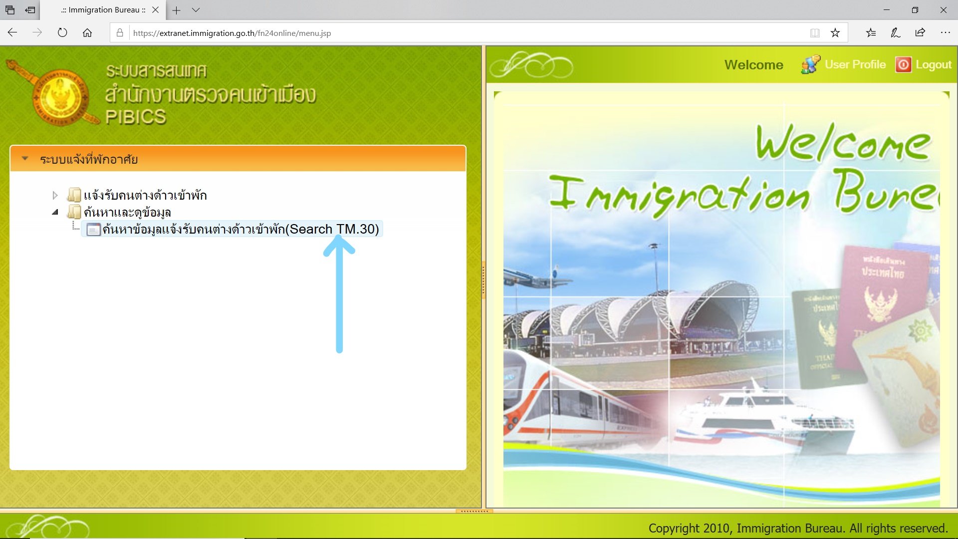 4) Log in to https://extranet.immigration.go.th/fn24online/ using password you received in step 2,
