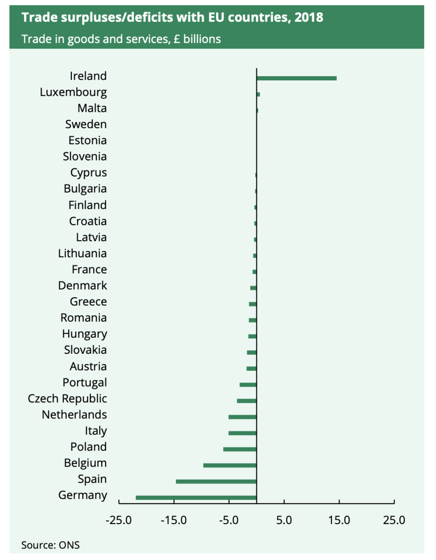 But the rest of the EU economy is about 6 times the size of the UK's. So let me ask again, which nation of the EU exports 44 percent of its total exports to the UK? Or, for that matter, anywhere near that percentage?