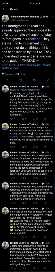 What is great is to see this guy - Richard Barrow- who, endlessly, has tweeted pictures of tourists and residents queuing in Chaeng Wattana, Phuket, Jomtien ... Then, he has been contacted by Thai Immigration who started calling him non stop today to update him about this extension till end of April and to be renewed if needed. Probably it helps to have almost 160,000 followers!
