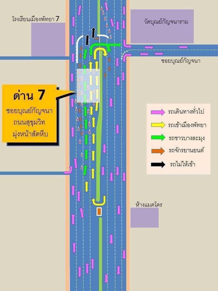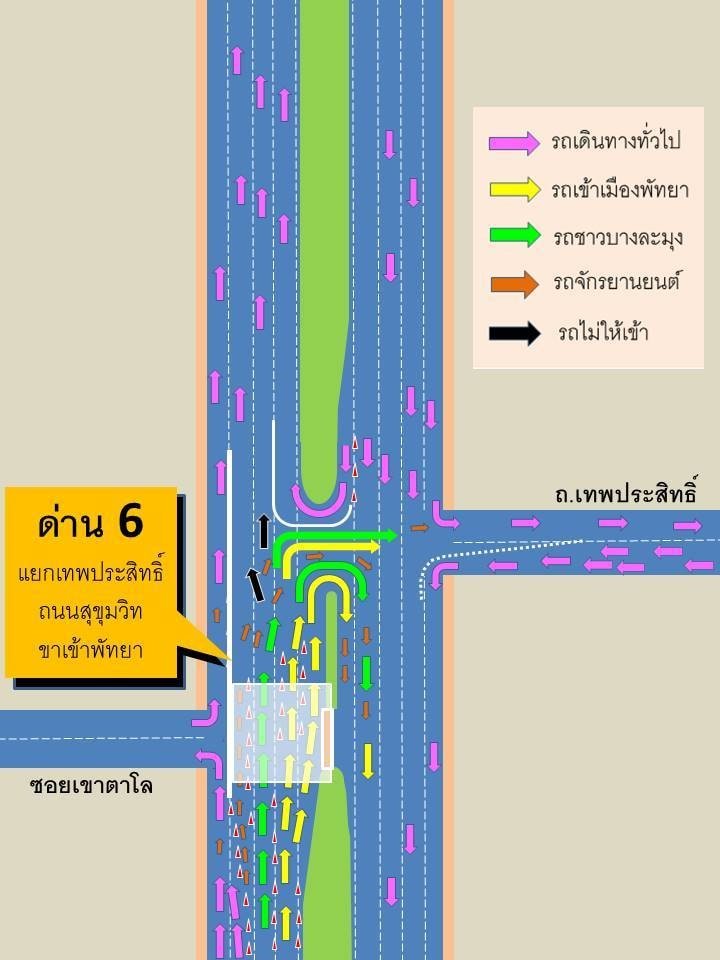 Officials said the main cause of the traffic congestion resulted from people not trying to enter Pattaya city but trying to travel to the east of Pattaya or to places such as Sattahip or Chonburi town.