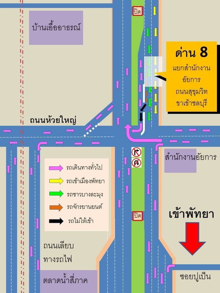 Point 8 intersection of prosecutor (Sukhumvit Road, inbound to Chonburi Province)