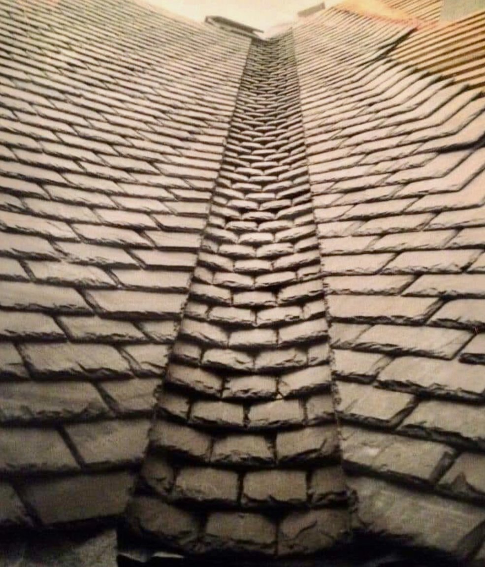 I see they have not put cement along the edges of the ridge tiles, water can be blown in there too. Mine were cemented and red tile painted when they built the house...