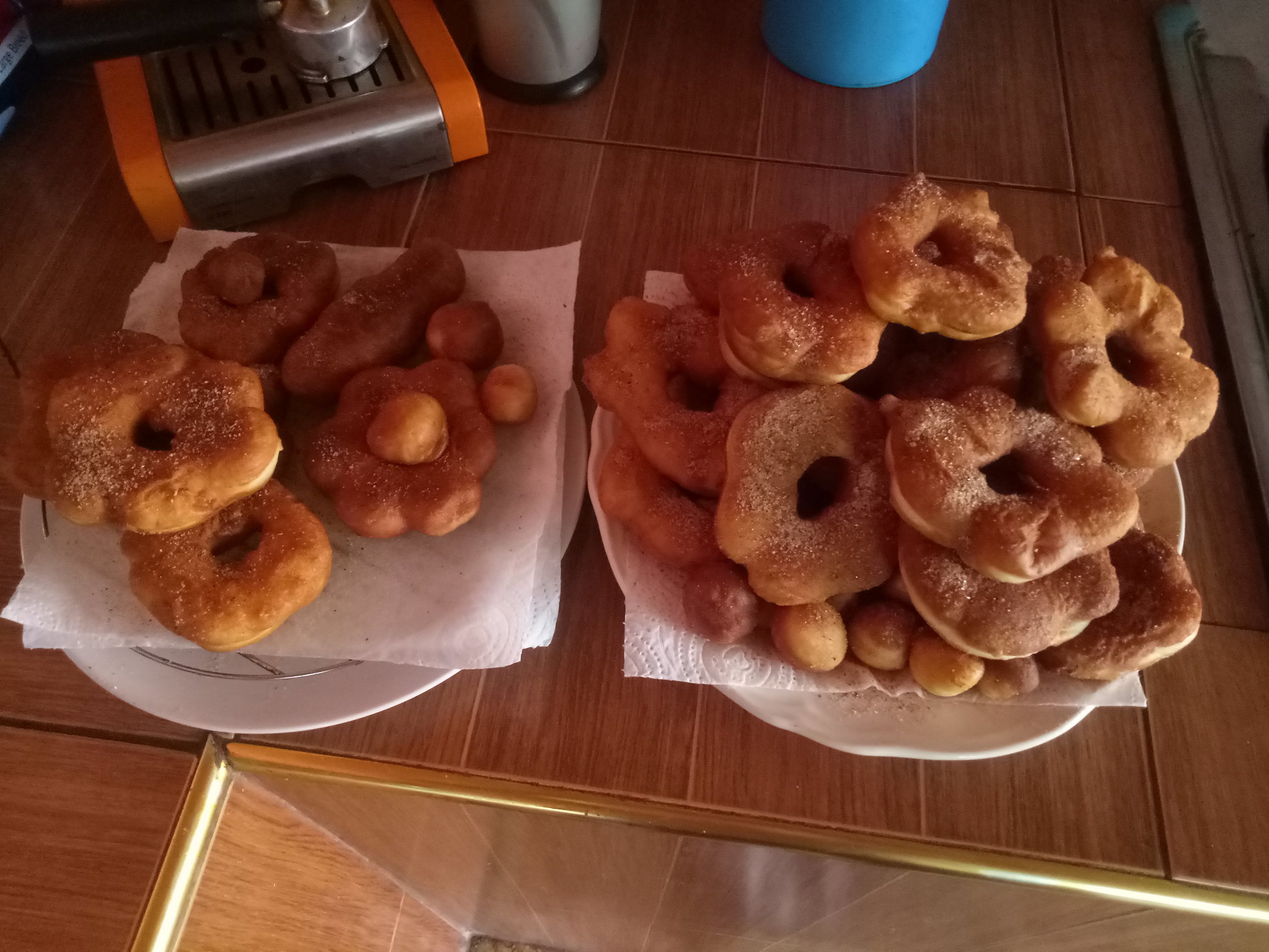 Dunna!  Almost perfect donuts!  The wife just grabbed her second one so I know their OK.  Two boxes go into the freezer for another day.  The rest....well they aren't going to go moldy!