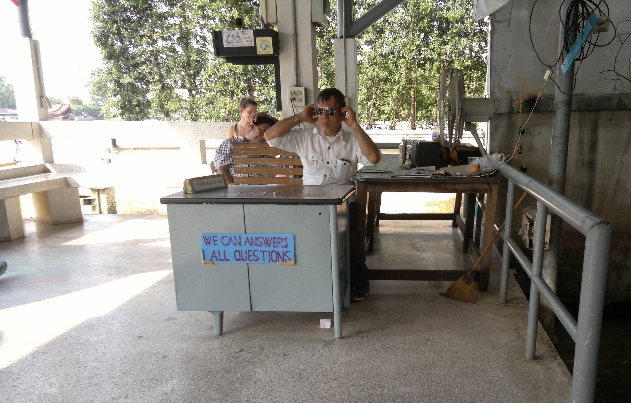 The puppet asks his handlers for help.