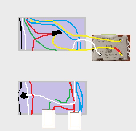 ...and where is the YELLOW wire. I'm assuming it gets converted from one of the BLUE wires on Switch #2.