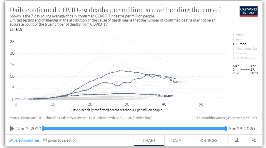 April 27, 20205 yr 21 minutes ago, nauseus said: SInce this VDO Swedish deaths have doubled. Really ?? This video first aired on 17th April when they had 1801 https://www.statista.com/statistics/1105753/cumulative-coronavirus-deaths-in-sweden/ Today they have 2194 https://www.worldometers.info/coronavirus/?utm_campaign=homeAdUOA?Si