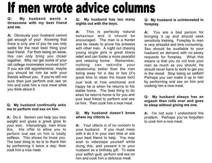 If Men Wrote Advice Columns