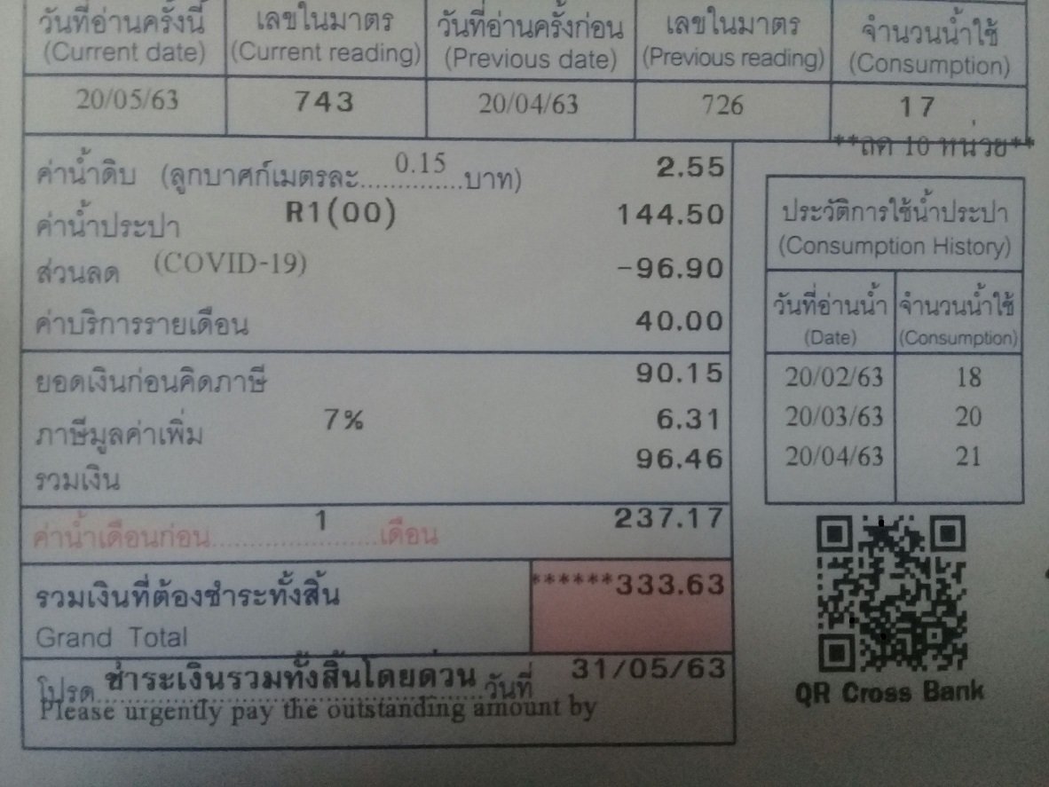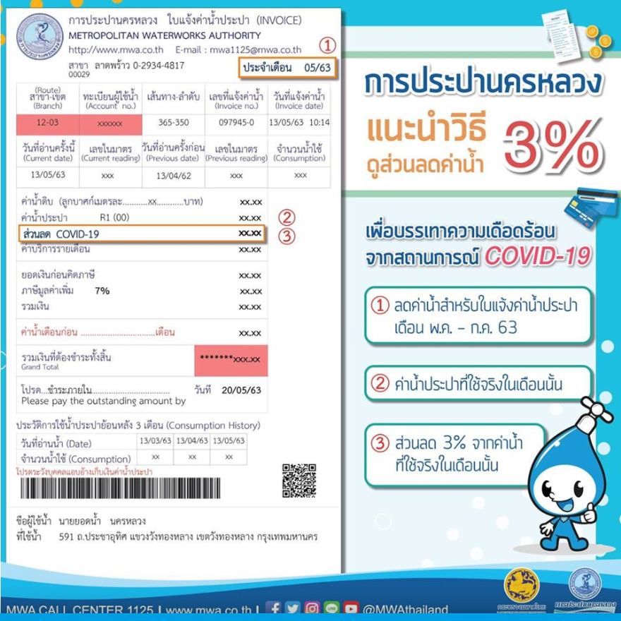 In Thai:  " กปน. มอบสิทธิ์ใช้น้ำฟรี 10 คิว และลดค่าน้ำ 20 % ส่วนที่เกิน 10 คิว 3 เดือน "เพิ่มรายได้ ลดรายจ่าย" เพิ่มมาตรการบรรเทาความเดือดร้อนของประชาชนจาก COVID-19 "