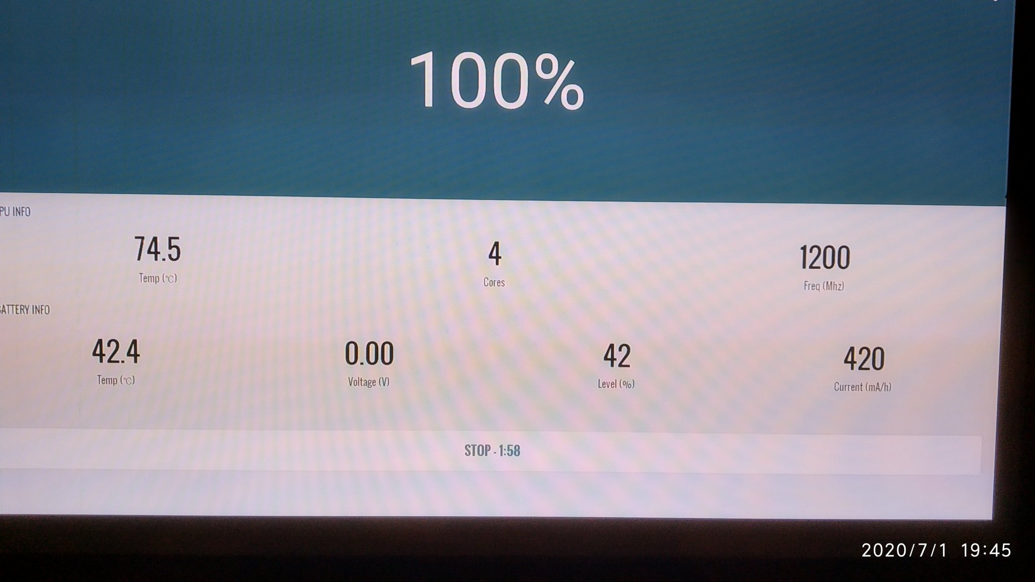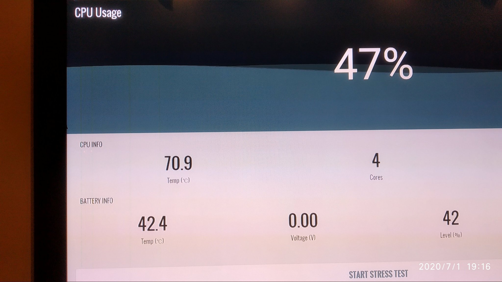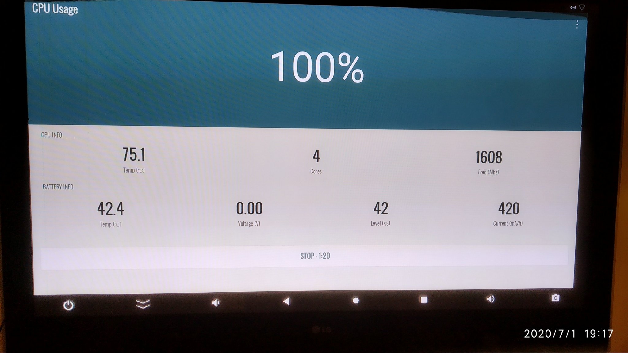 You stop the stress test, and it keeps running at 100%, even after you close the app, so actually this maybe 10 minutes in reality.