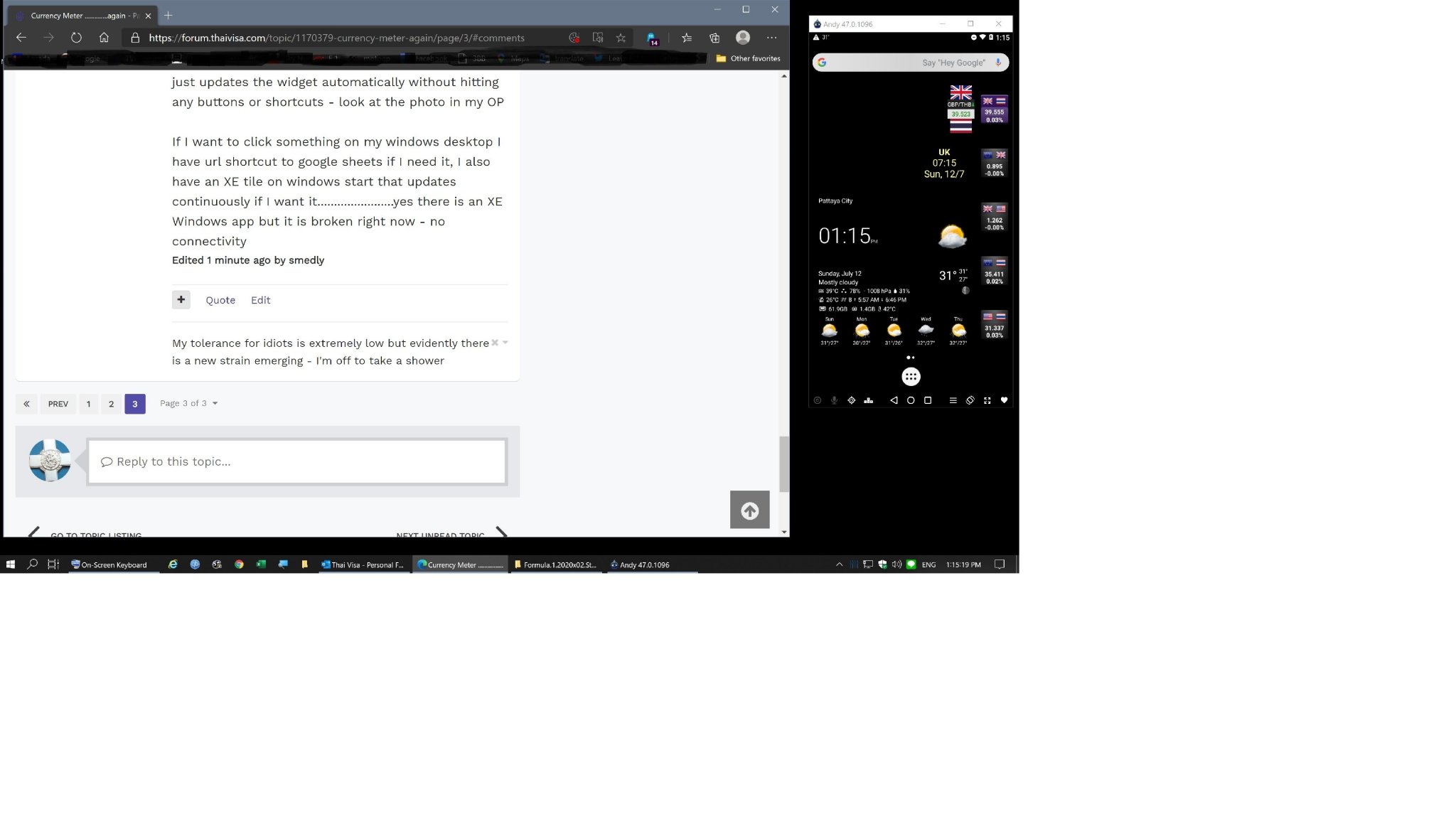 PS - XE android app also has widgets you can put on the homescreen of the emulator - in the photo there are 7 widgets in total - I might try XE at some point to see how it looks