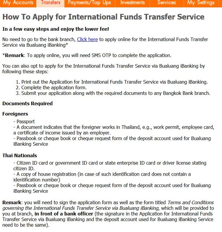 last time i tried to wire few thousands dollars from nasty bangkok bank, i had to go to their